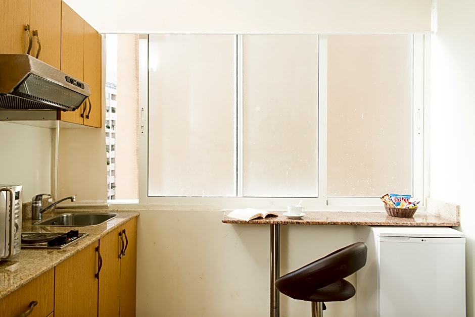 Studio Deluxe Double is 334 square feet and includes either a queen-size bed 150-154 width or 22 single beds 80-130 width plus desk, satellite tv , hairdryer, tea and coffee making facilities , ironing set, and safe.